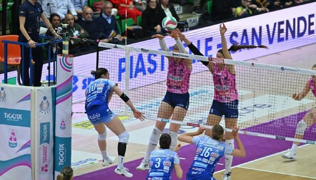 3月16日凌晨,女排意甲半决赛首场比赛开打,科内利亚诺队在主场迎战诺瓦拉队。本场比赛双方战满5局,科内利亚诺让二追三3-2实现大逆转,在五场三胜的系列赛当中1-0占得先机。中国球员朱婷在比赛中拿下21分,并荣膺单场MVP。