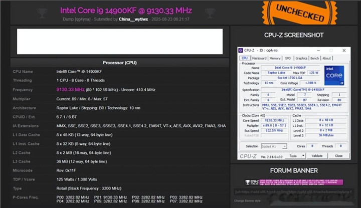 中国超频玩家wytiwx近日成功将英特尔酷睿i9-14900KF处理器超频至9130.33MHz厦门股票配资开户,刷新了该处理器的世界纪录。这一成绩较其今年1月创造的9121.61MHz纪录提升了约13MHz,并已获得国际权威平台HWBot的正式认证。