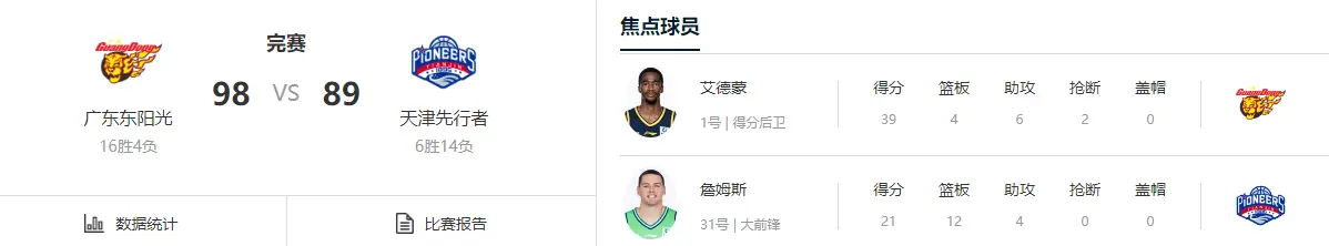 易边再战双方持续纠缠,直到末节单外援的比拼才慢慢出现转折,天津队显得缺乏后劲,再能维持稳定贡献。广东男篮醒过来,外线多点开花相当及时,胡明轩连续取分不给任何机会,最终有惊无险守住主场。