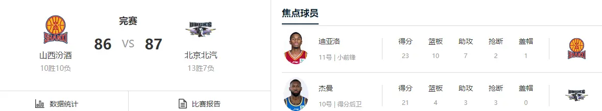 下半场的对决愈发精彩,北京队本来一点点扩大优势,将主动权握在手里,但山西男篮没有轻言放弃,迪亚洛带队疯狂冲击,末节甚至是实现反超。最后经过跌宕起伏的剧情,杰曼大心脏三分+张才仁的补篮至关重要,北京男篮以1分的优势实现复仇。