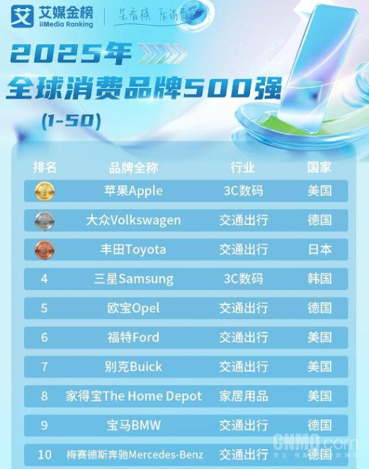 【CNMO科技消息】3月4日,艾媒咨询正式发布《2025年全球消费品牌500强》榜单。其中,苹果凭借其强大的品牌影响力与市场表现,位居榜首。在国别分布上,中国品牌表现尤为突出,以185个上榜数量强势位居全球第一,占榜单总量的37%。